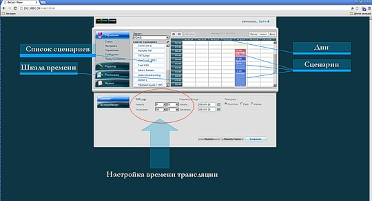 Если трансляция должна повторяться ежедневно в течение некоторого количества дней, то необходимо указать интервал дат, в котором происходит повторение, а при необходимости и дни недели. Система автоматически растиражирует сценарий в указанном интервале дат и дней.