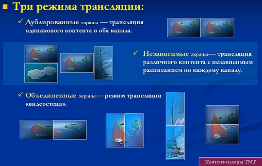Соответственно, контент-плееры TNT имеют три возможных режима трансляции: