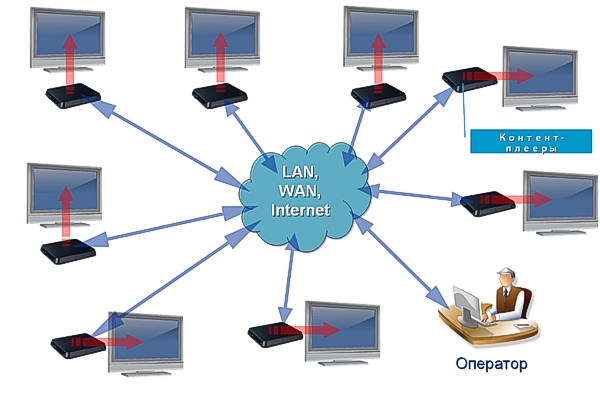 Зачем тогда нужно столько дорогостоящих источников видеосигнала, подключенных к каждому дисплею и при этом транслирующих одно и то же? Достаточно просто разветвить исходные видеосигналы на нужное количество дисплеев и тем самым в разы сократить стоимость системы. Но этот вариант уже относится к централизованной системе трансляции.