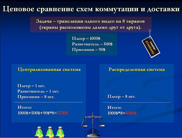 Подведем итоги нашего обзора. Итак, есть две схемы коммутации и доставки видеоконтента к устройствам отображения. Какую из них выбрать? Какие у каждой схемы преимущества ?