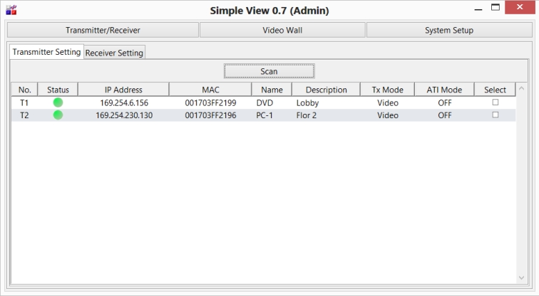 После того, как приемники и передатчики объединены в сеть, необходимо произвести настройку видеостены. Для этого нужно воспользоваться ПО «Simple View» (TNT MMS-1000), которое и предназначено для настройки и управления видеостеной.
