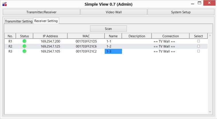 Настройка видеостены, практически полностью повторяет ее настройку при помощи SMM коммутаторов. На первом этапе вам необходимо зарегистрировать приемники и передатчики.