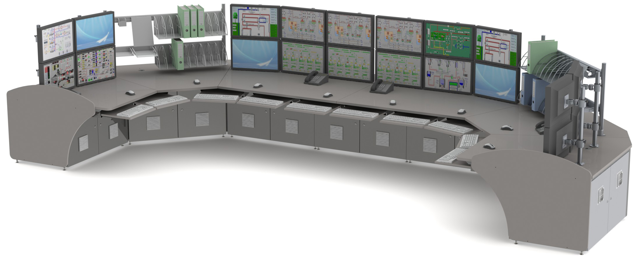 Основная проблема, которая возникает при проектировании рабочих мест ситуационных и диспетчерских центров, – как максимально удобно и комфортно разместить сотрудников и необходимое для их работы оборудование. Обычные столы, тумбы и прочая мебель не решают подобного рода задачи.