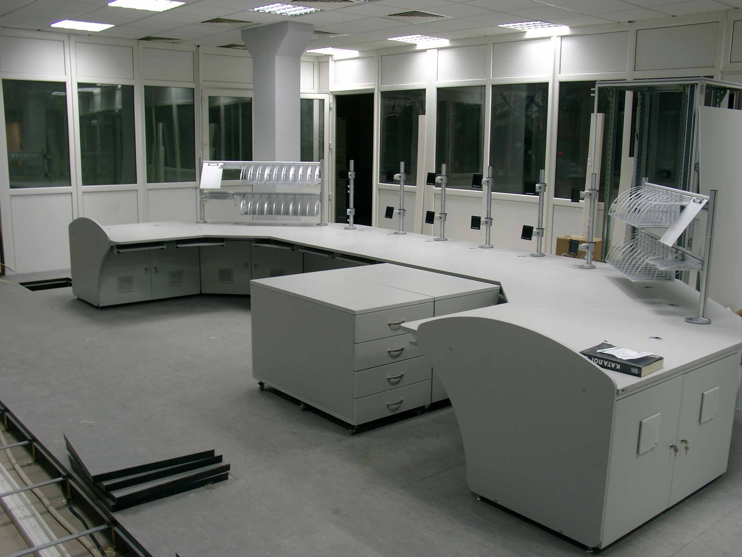 Столы операторов, стойки для оборудования, системы для монтажа видеостен представляют собой конструкцию на базе разборного металлического каркаса и различных функциональных изделий для работы операторов (столешниц, шкафов, полок и т.д. ), а также систем крепления и прокладки кабелей.