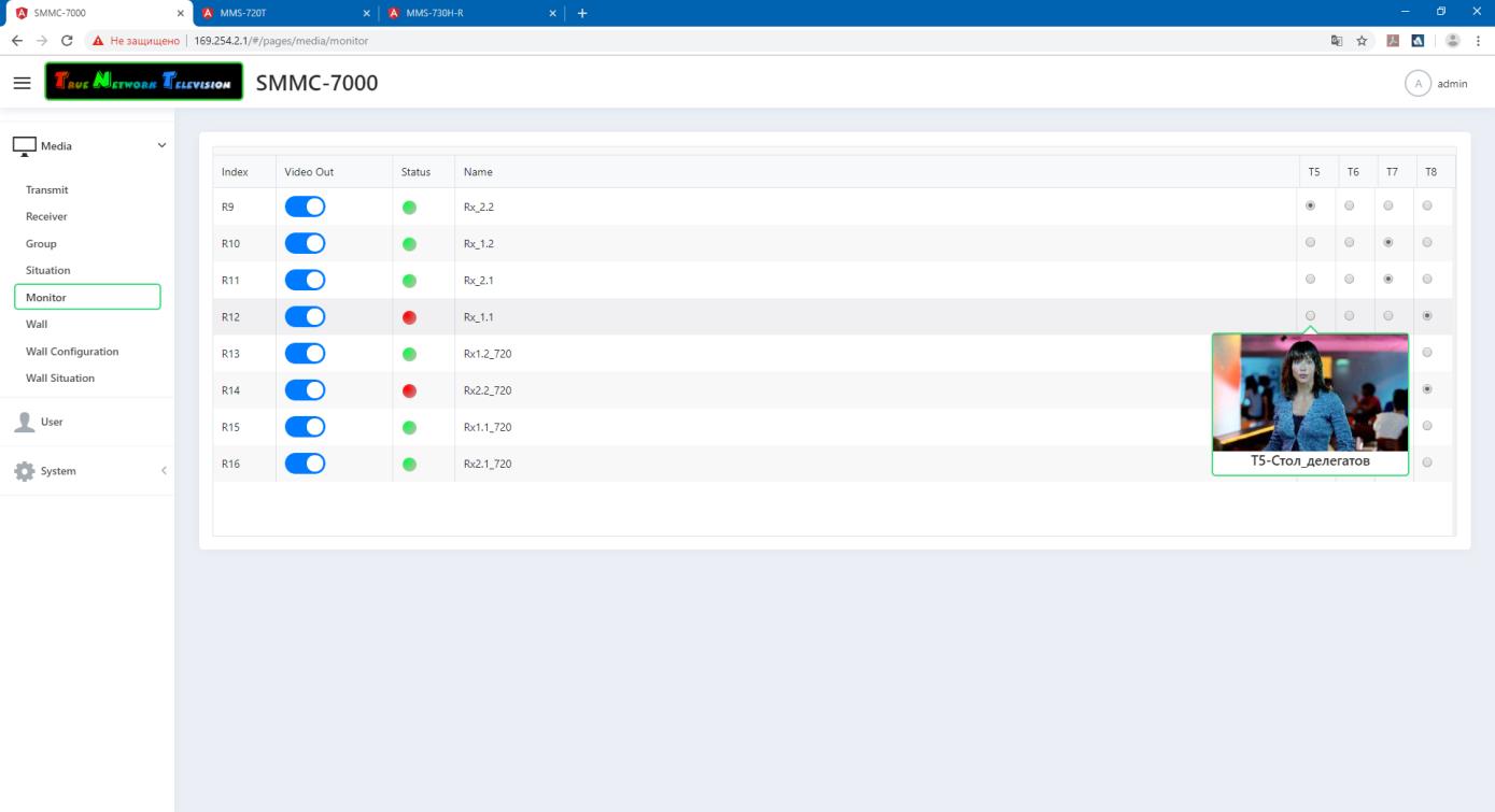Предварительный просмотр транслируемого контента в WEB-интерфейса SMM-коммутатоа