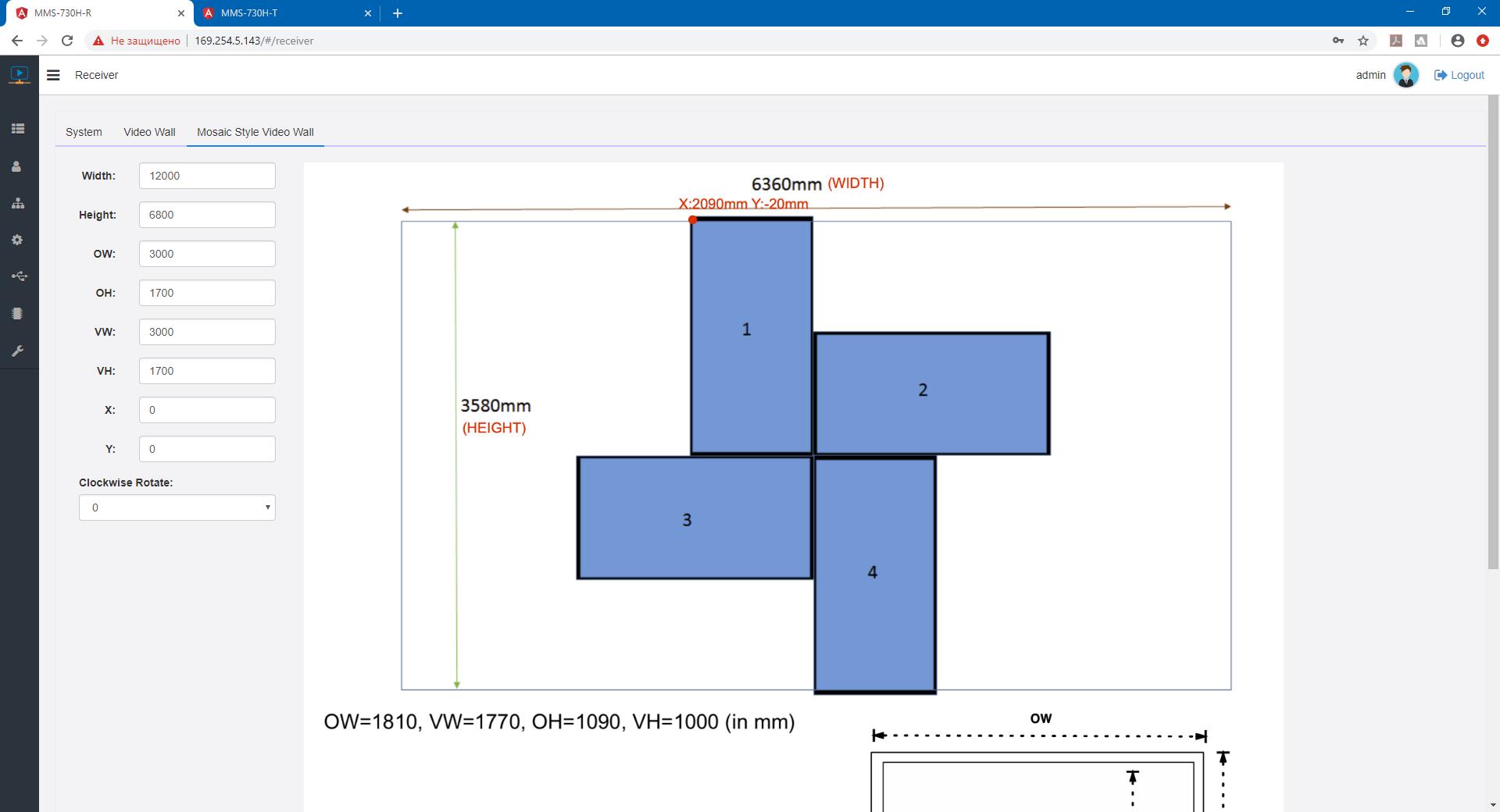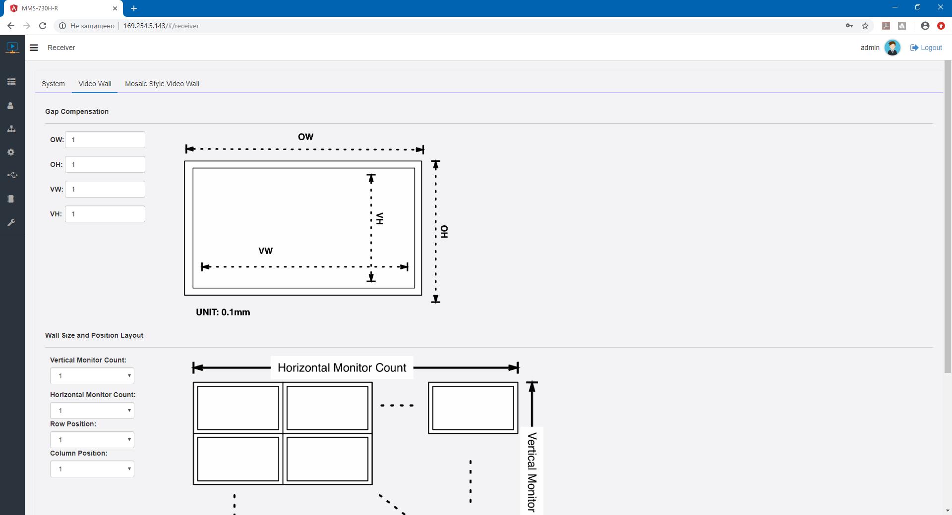 Все необходимые настройки можно сделать посредством WEB-интерфейса любого из приемников, составляющих видеостену. Эта функция удобна, когда надо быстро создать простую видеостену произвольного формата (включая многооконную).