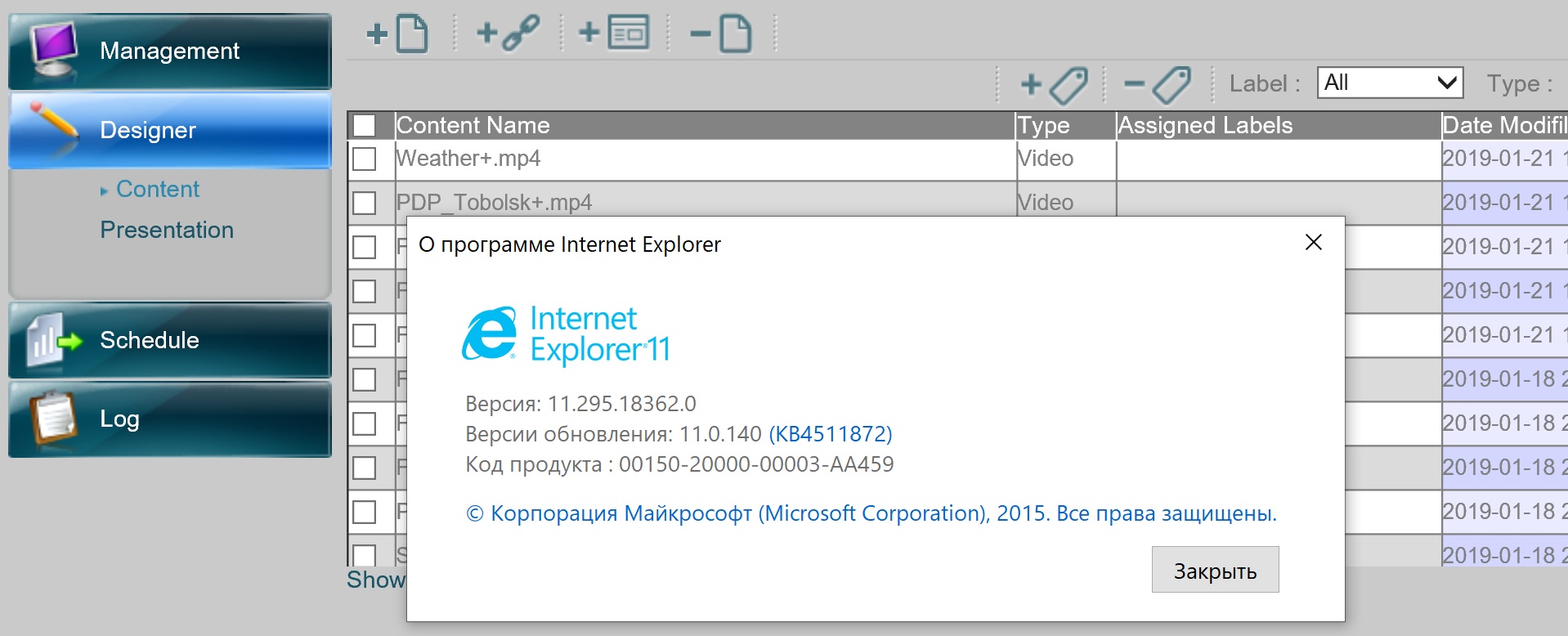 - Internet Explorer, который также рекомендуется обновить до версии 11.295.18362.0 с обновлением 11.0.140 (как на картинке).