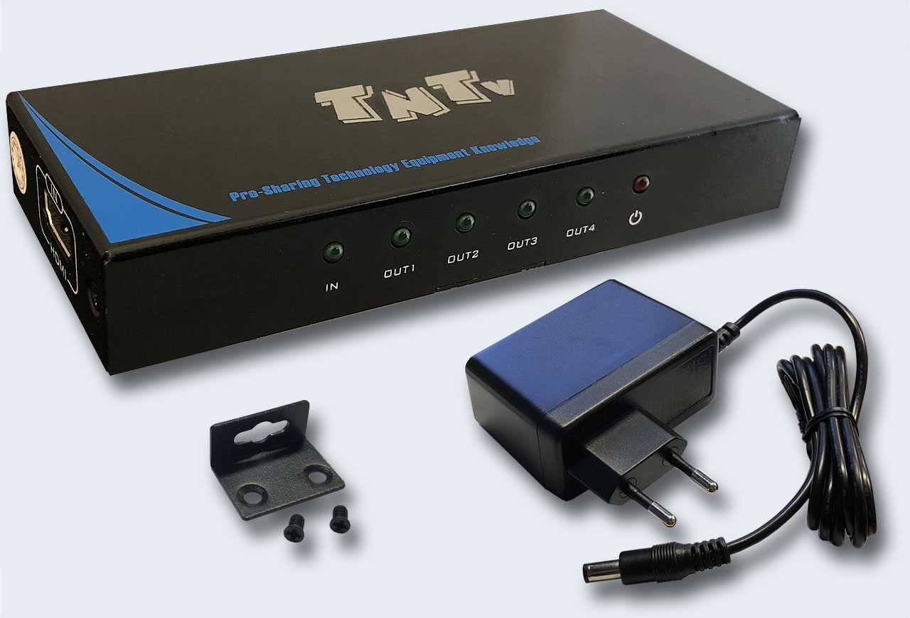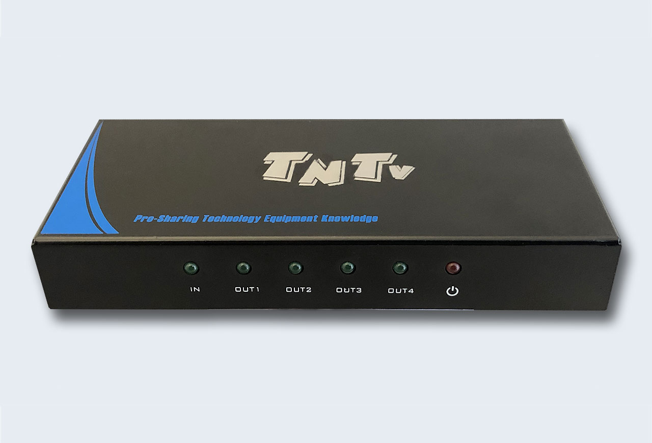 TNT MMS-6084VSH (разветвитель) – устройство, предназначенное для разветвления (дублирования) исходного HDMI сигнала на четыре выходных порта. Разветвитель поддерживает подключение HDMI источников с разрешением видеосигнала до 4K включительно.