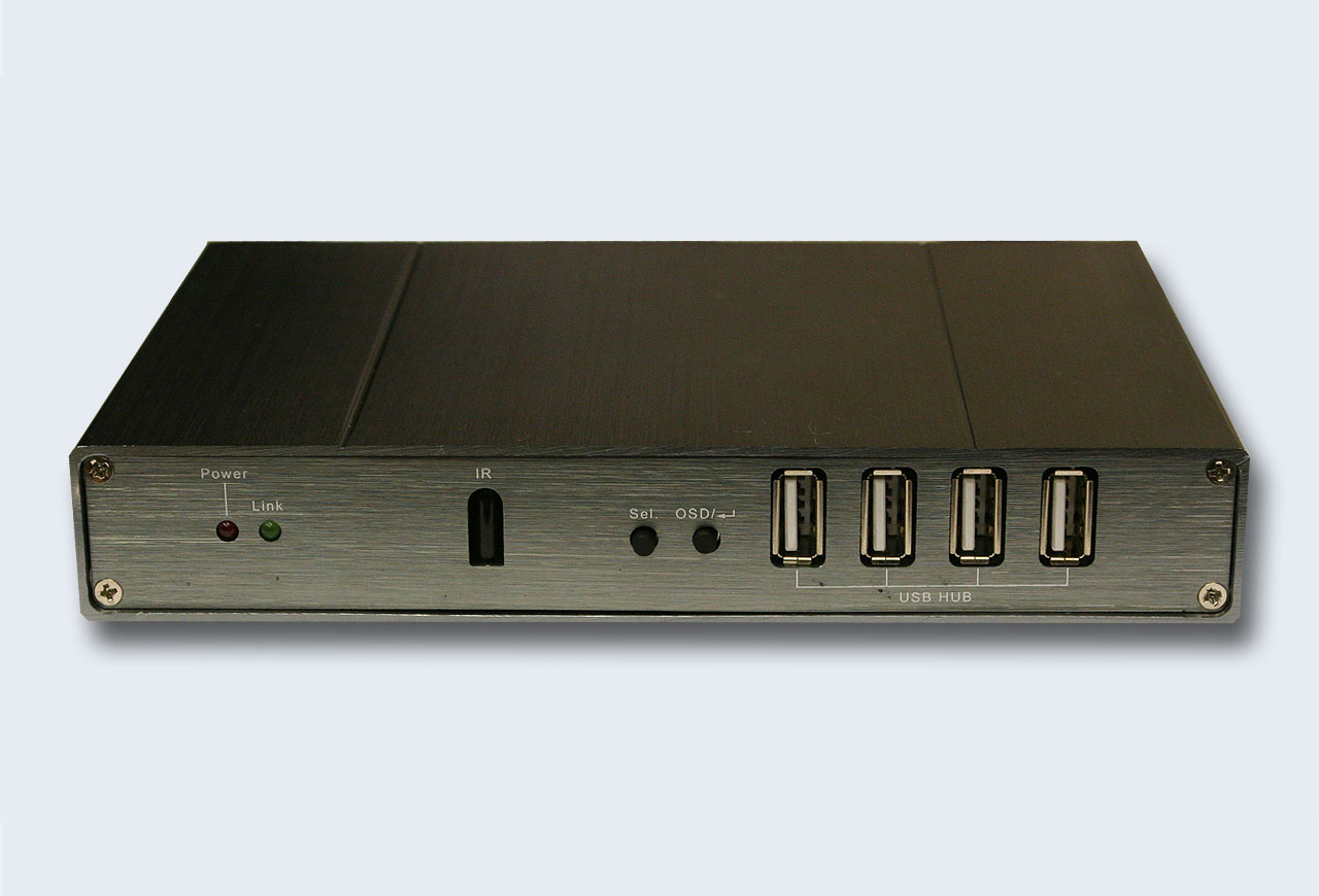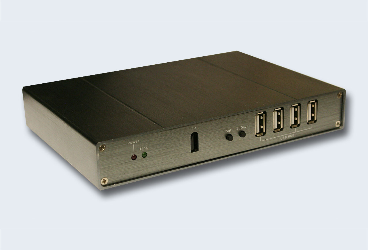 Удлинитель-приемник, VGA+USB+AUDIO+RS232+IR, 100 метр., GigabitEthernet (TCP/IP), HD-DB15+RJ45+4xUSB А-Тип+RS232+2xMINIJACK+IR, F, без шнуров, Б.П. 220> 5V, (макс. разреш. 1920*1080 60Hz; HDTV 480p/720p/1080i/1080p)