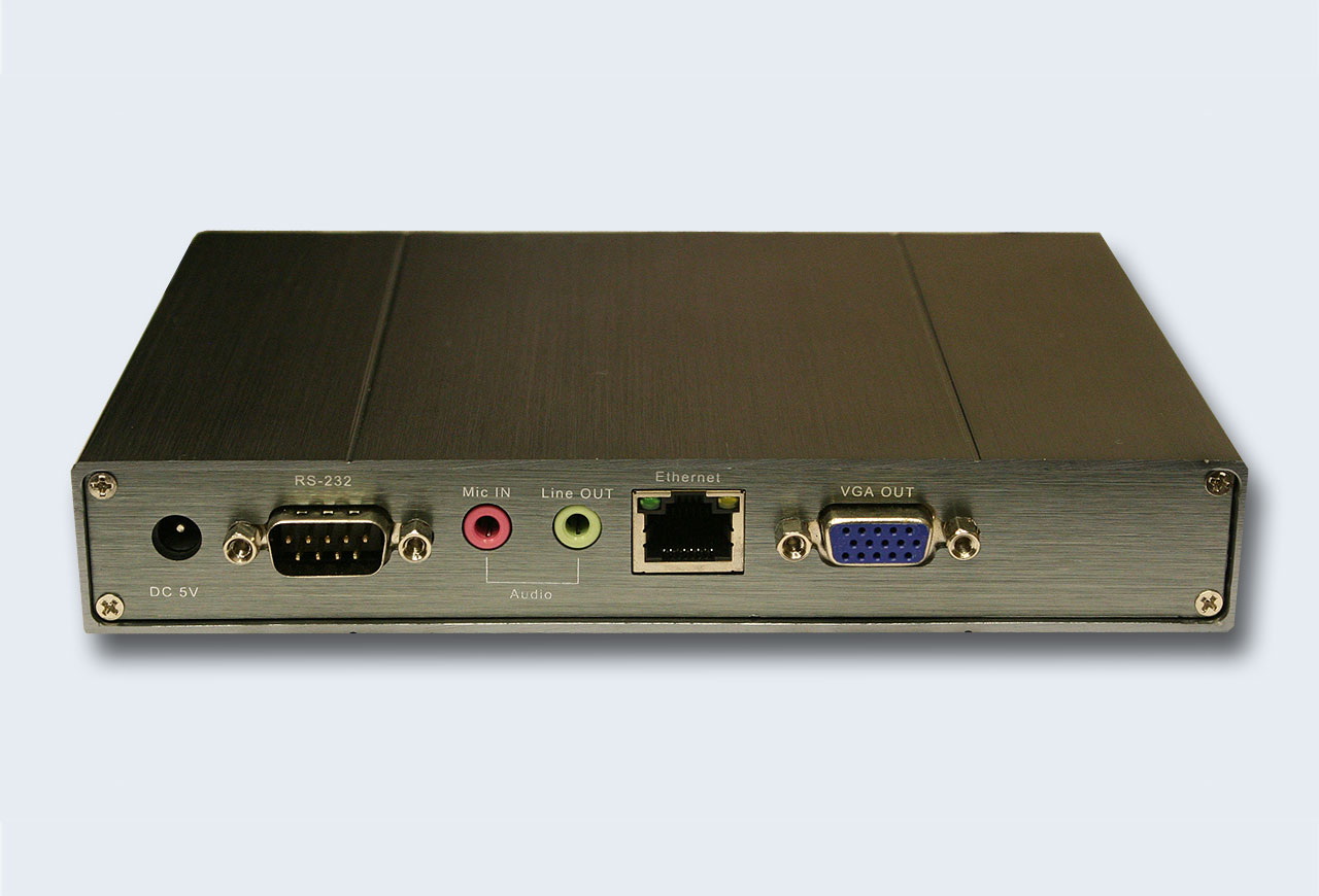 - Обеспечение приема VGA сигнала и стереозвука из локальной сети. Поддержка стандартного TCP/IP протокола передачи данных для работы в локальных сетях