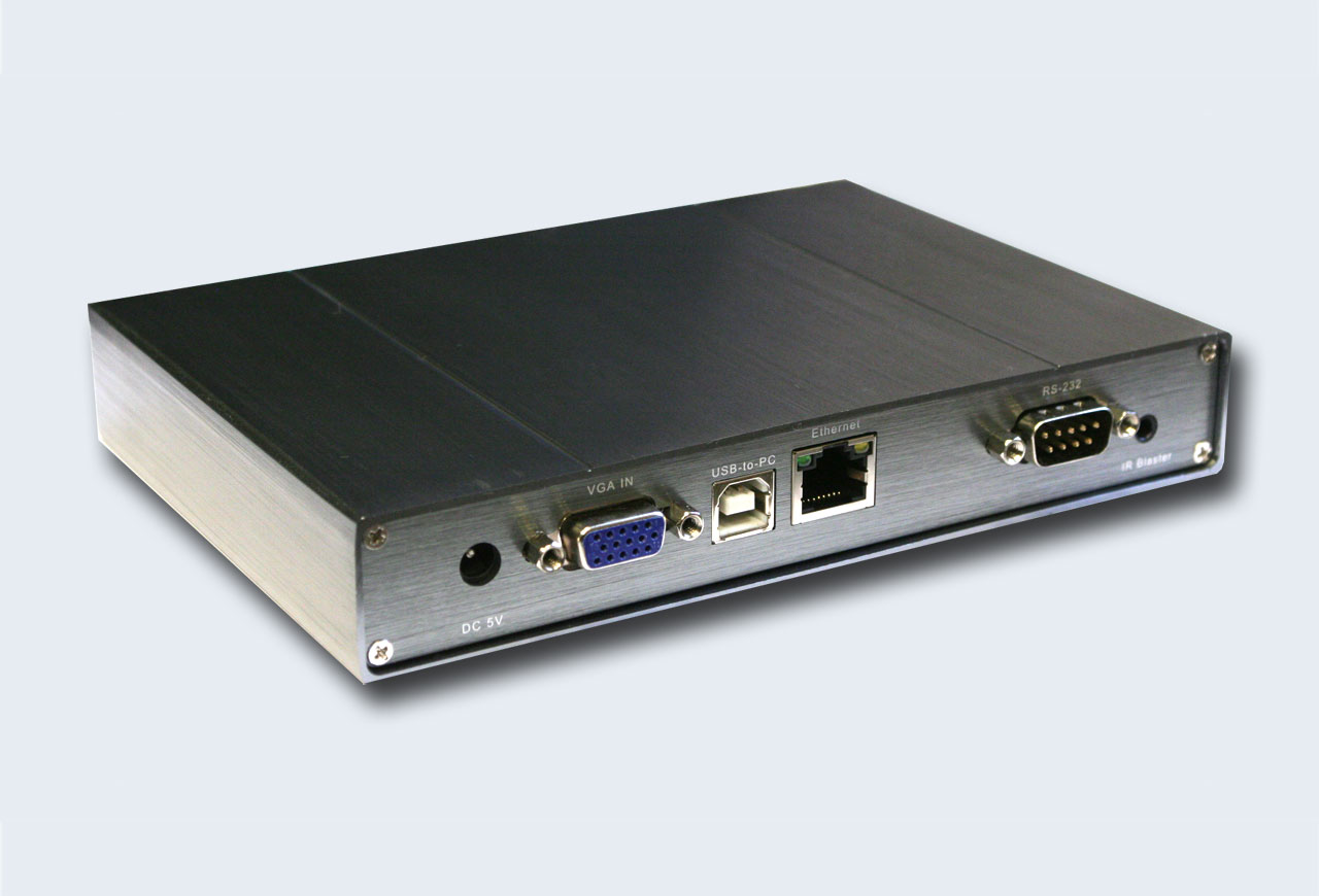 - Обеспечение передачи VGA сигнала и стереозвука в локальную сеть